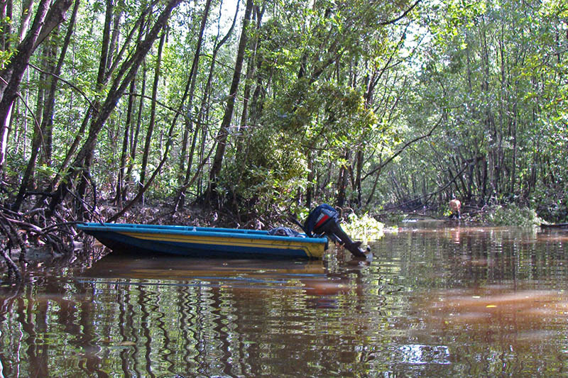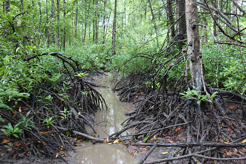 About 80 percent of it is used for coal production under sustainable harvest policies, while the remainder is completely protected for biodiversity preservation. The mangrove landscape is dominated by Bakau trees that fuel the charcoal industry, but the entire reserve is also important as a breeding site for coastal birds and commercial fish.