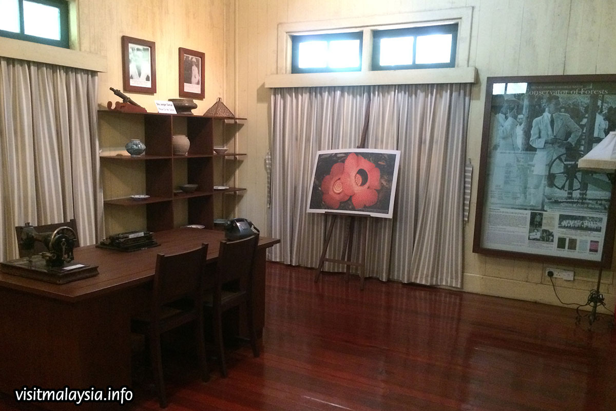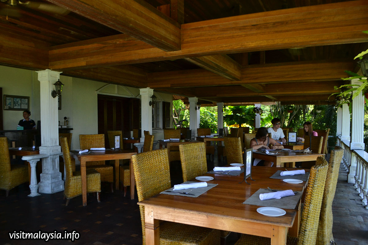 The various rooms in the home are also furnished in their original setting, littered with anitques and exhibits to peruse. Located next door is a garden space with another colonial bungalow that houses a restaurant and bar that serves continental cuisine. Finally, visitors may walk down to an observatory platform that overlooks the bay of Sandakan just below the garden.