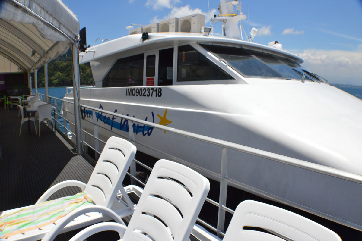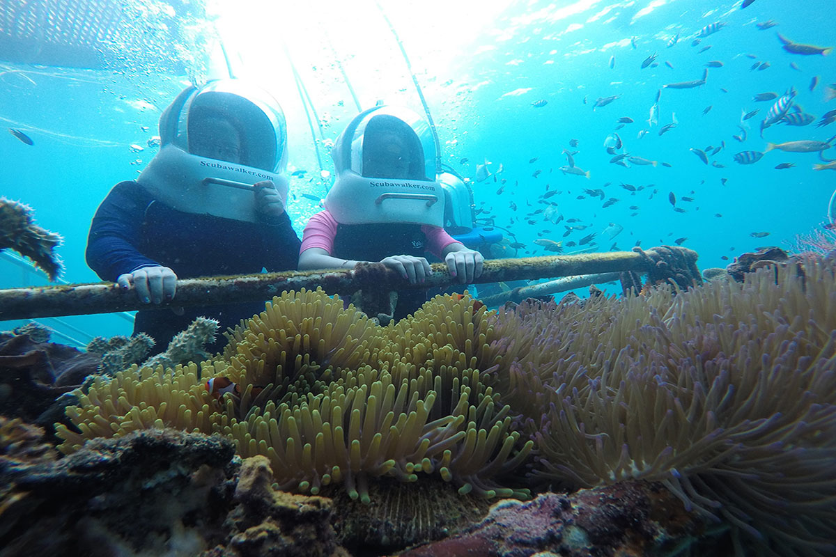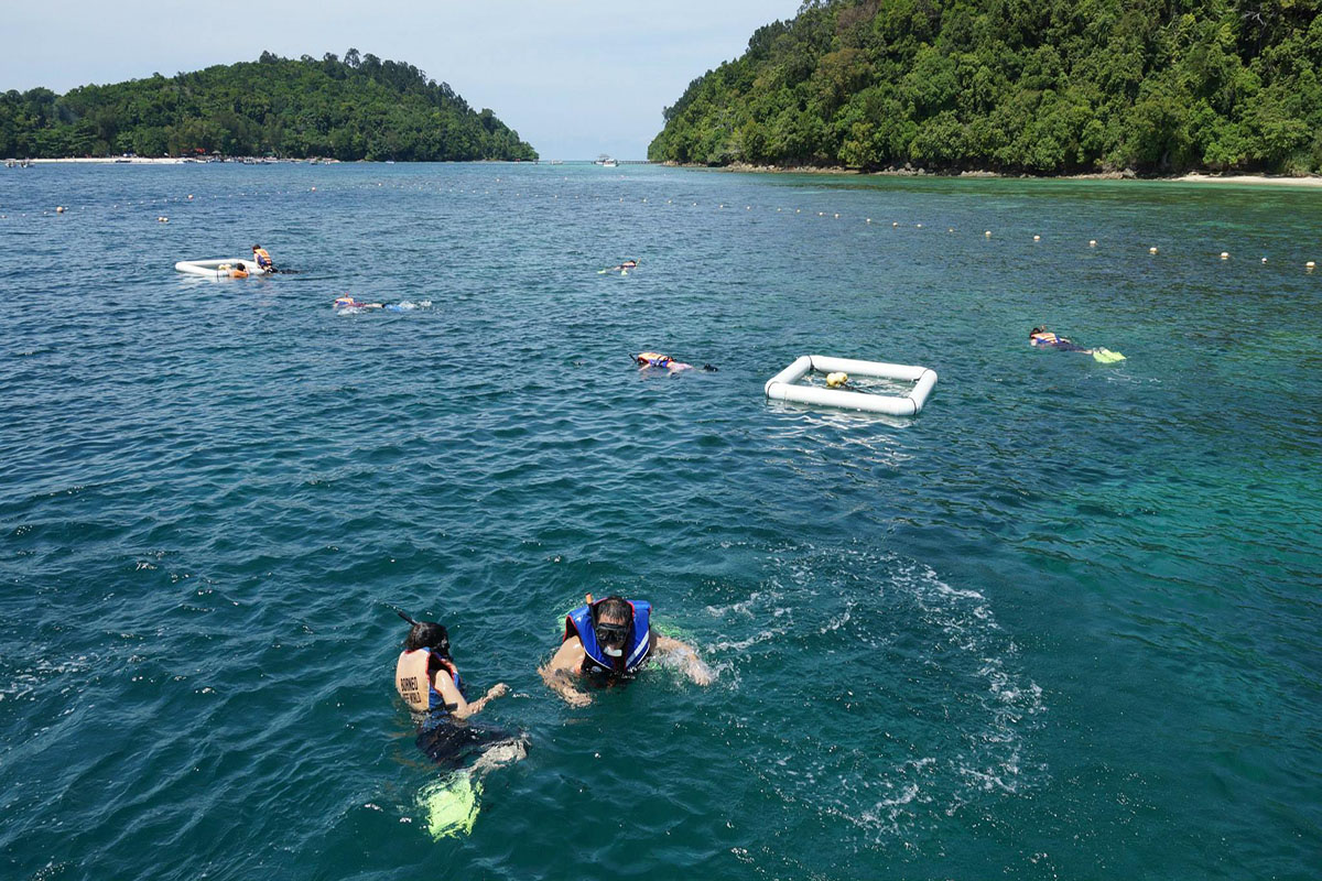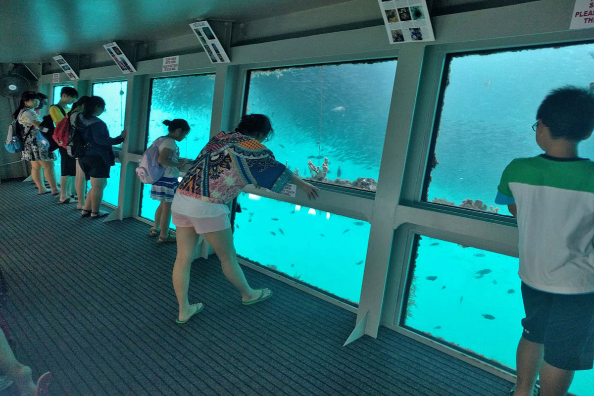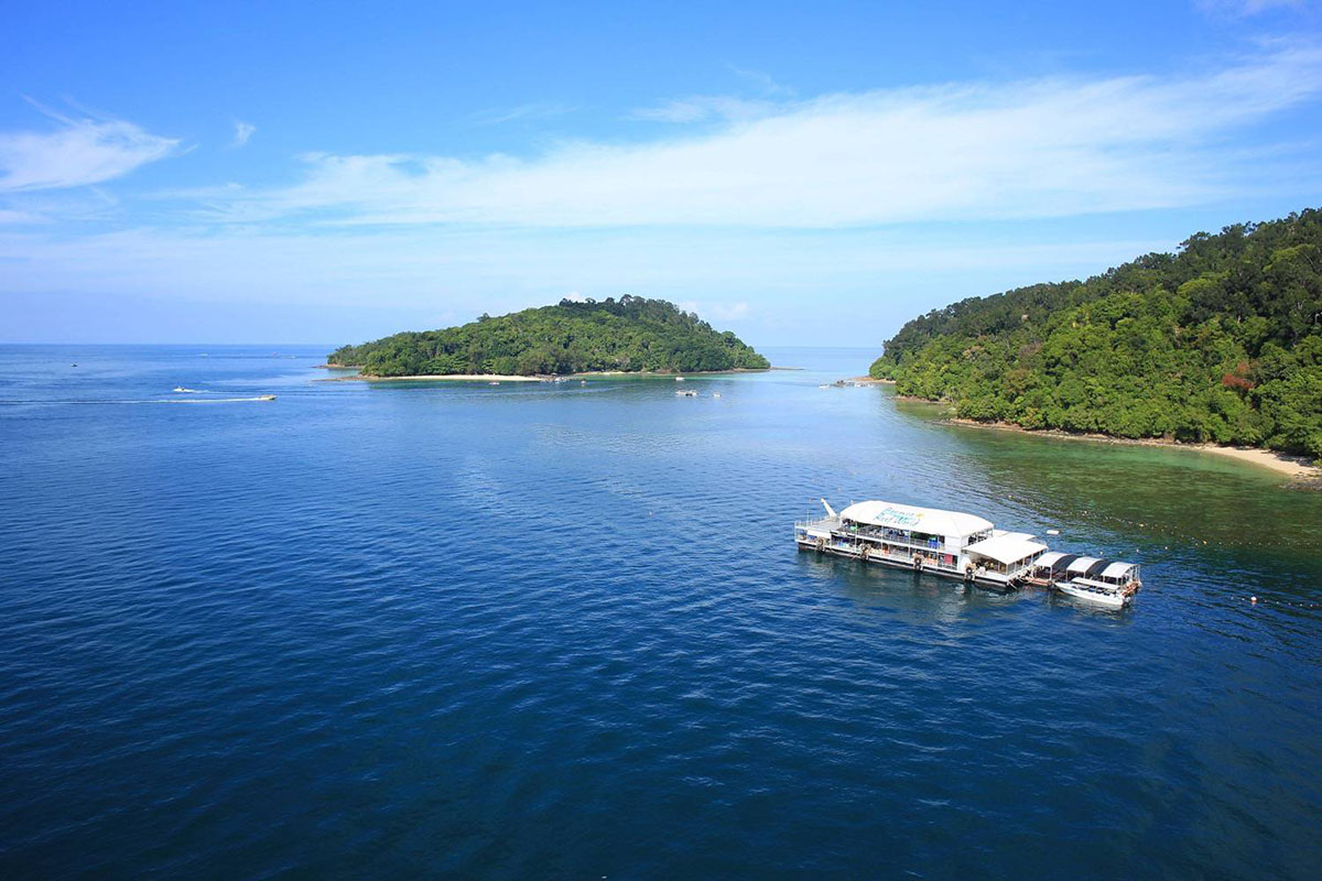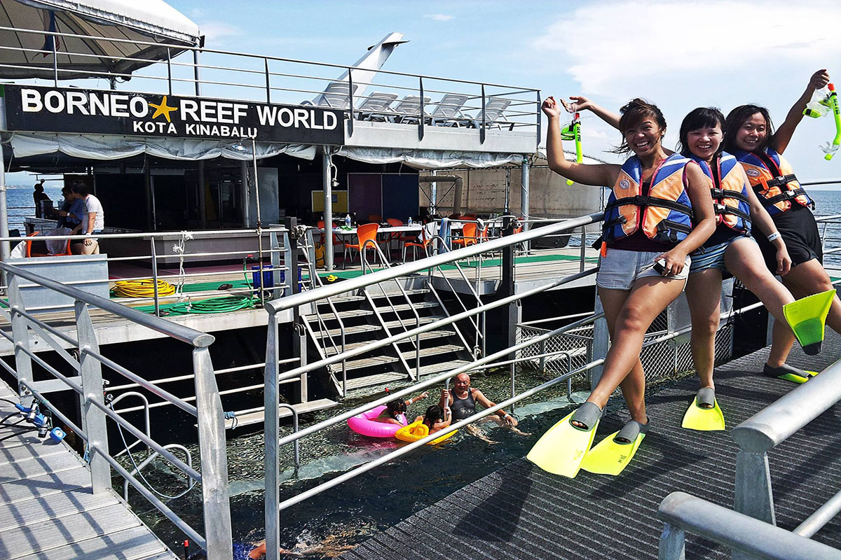 Borneo Reef World is a large pontoon moored between Pulau Gaya and Sapi Island off KK City, catering for tourists looking for alternative island-based activities at sea. Floating above a coral reef, the platform can accommodate up to 500 people and is divided into an upper and lower deck, with an underwater observatory below four meters down the surface.