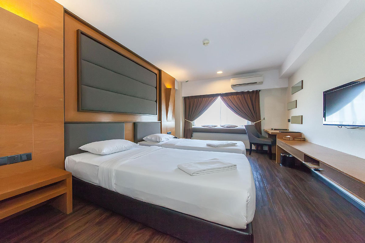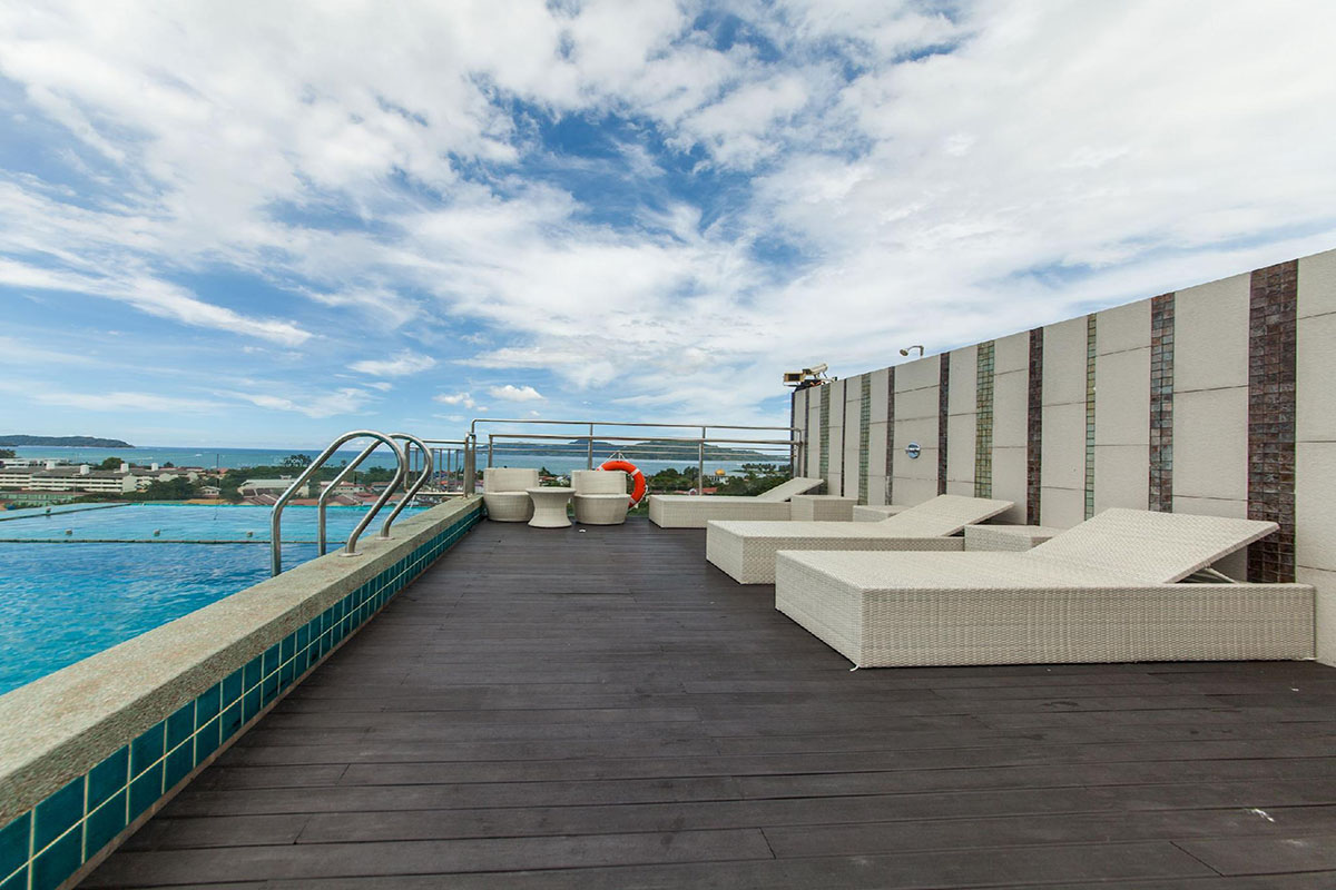 Facilties at the hotel include a rooftop swimming pool, restaurant, bar, business center and shuttle bus service to the city and airport. Guests can also find convenience stores and more restaurants in the surrounding area, while a moderately easy walk leads straight to the beach. Also nearby is Perdana Park, a recreational hub with restaurants and a nightly musical fountain show.