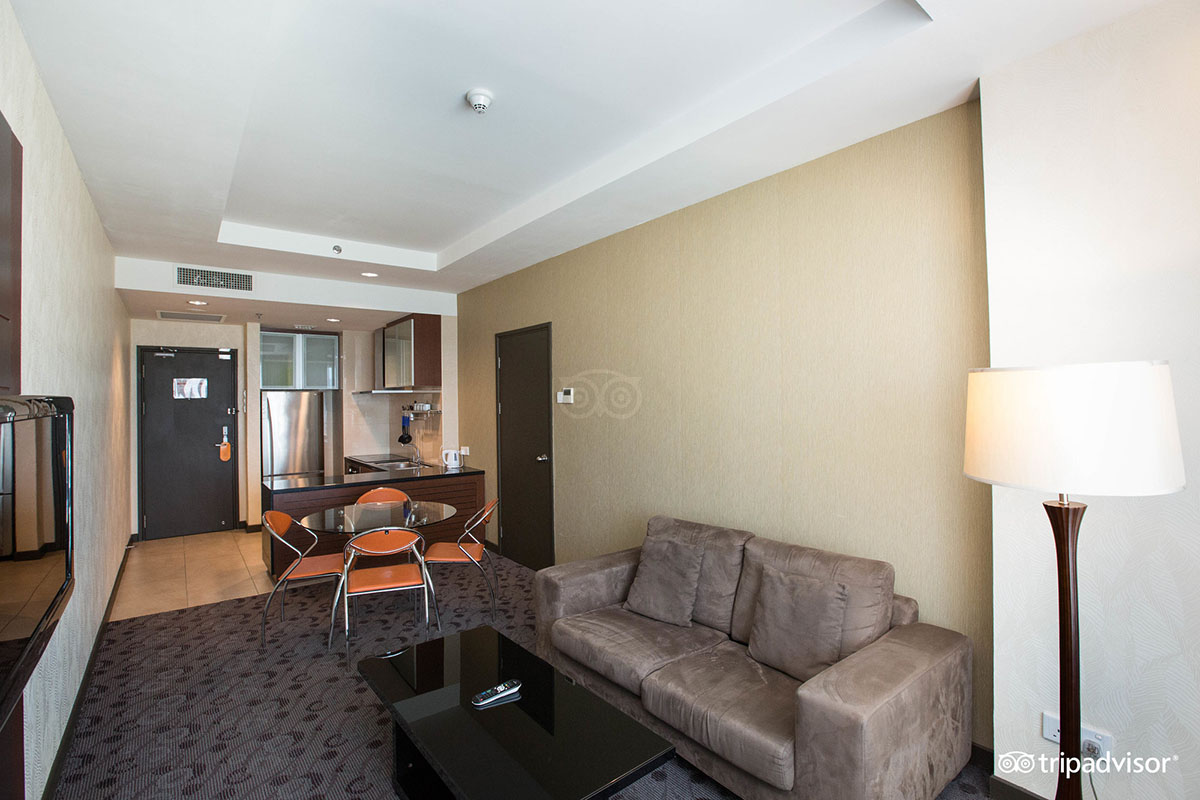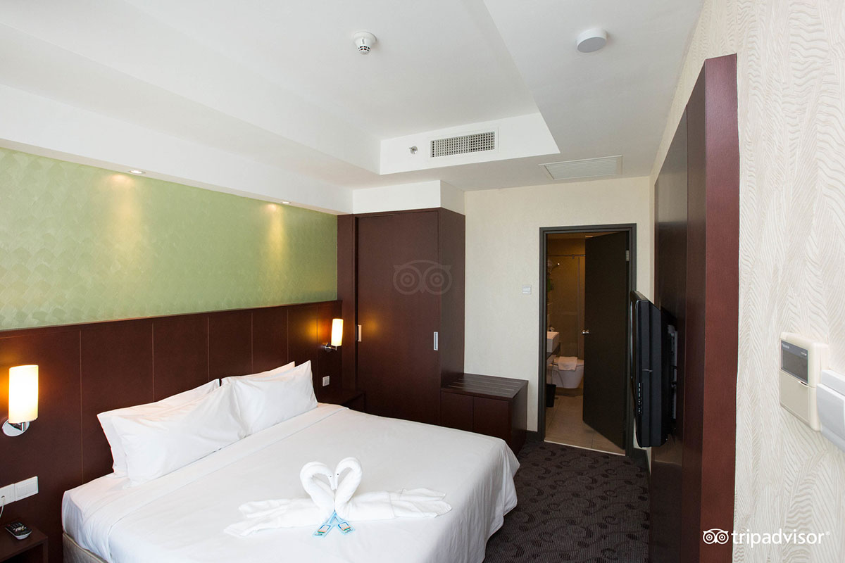These include air-conditioning, attached bathrooms with powerful hot water showers, LCD television sets with satellite channels and fast, complimentary wifi Internet access. The hotel has a single restaurant, but there are many dining choices just outside in the city. Also within moderate walking distance from the hotel are Gaya Street Market (Sundays) and Signal Hill.