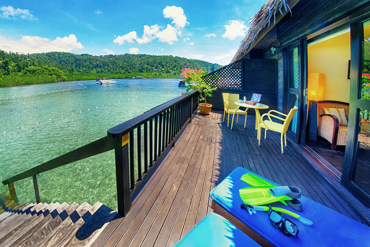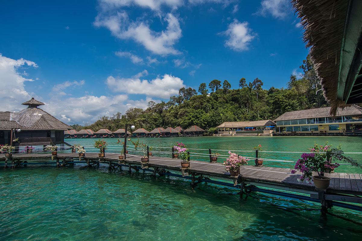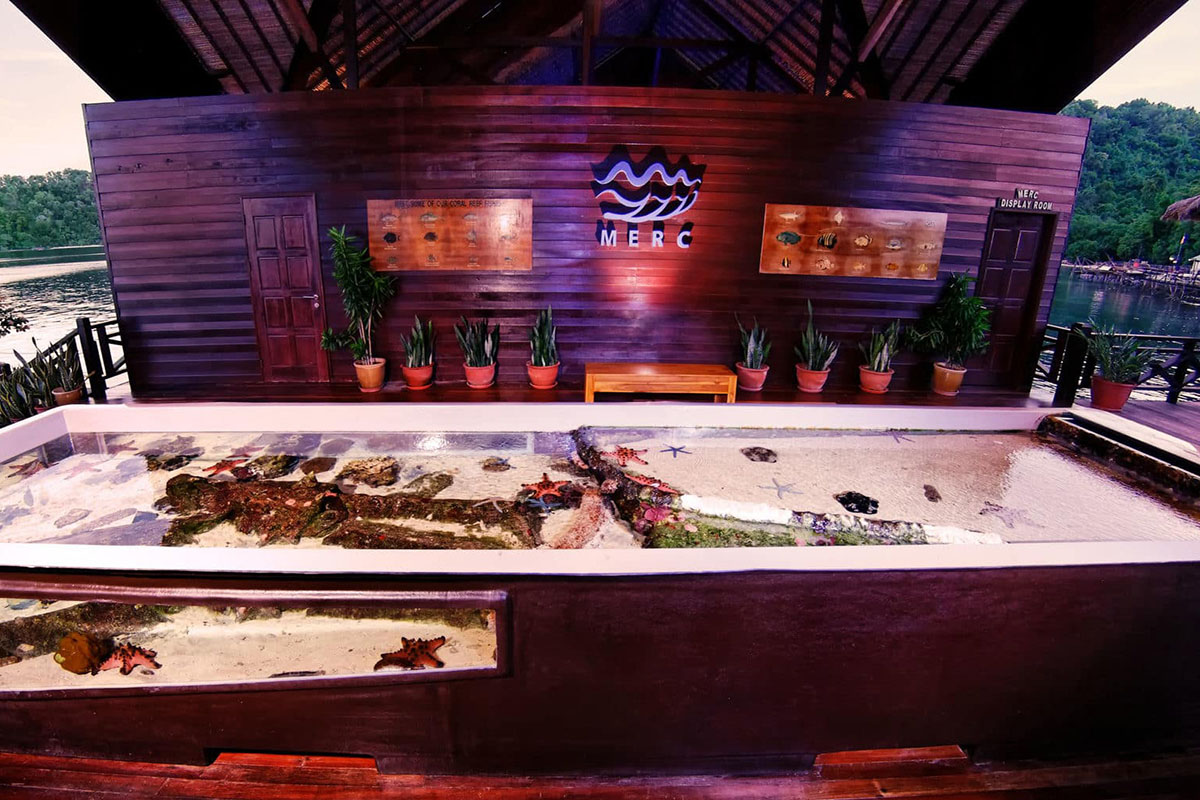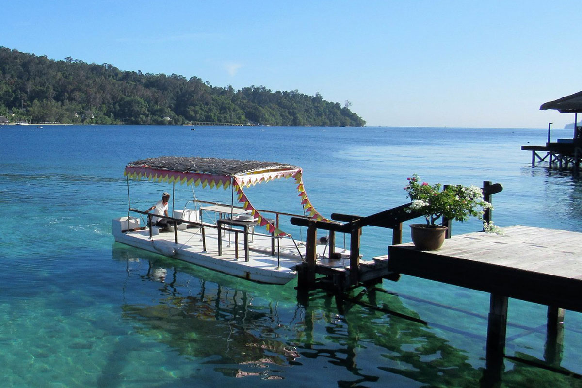 The resort also houses the Marine Ecology Research Center open to visitors which stores endangered live starfish, clams and corals for restocking purposes. Access to the resort from KK City is by speedboat from the hotel counter at Jesselton Point, which takes about 15-20 minutes. The hotel is a sister property of Bunga Raya.