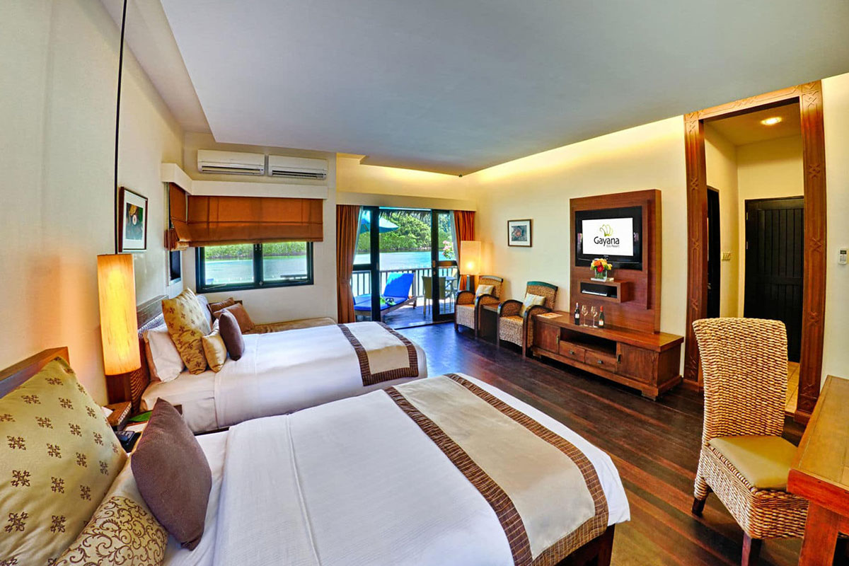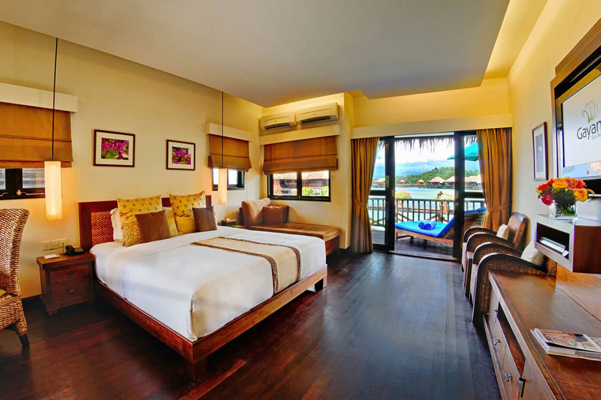 Gayana Marine Resort is a luxury hotel at Pulau Gaya, featuring thatched villas that spread out across the sea from the island's fringe. The villas provide boutique accommodation with plush amenities and comforts - most units with direct access to the water from their own private dock to snorkel and explore colourful coral reefs in the immediate surroundings.