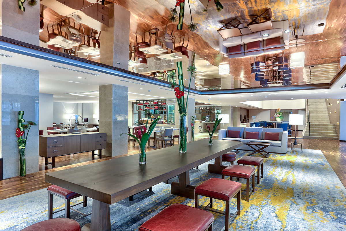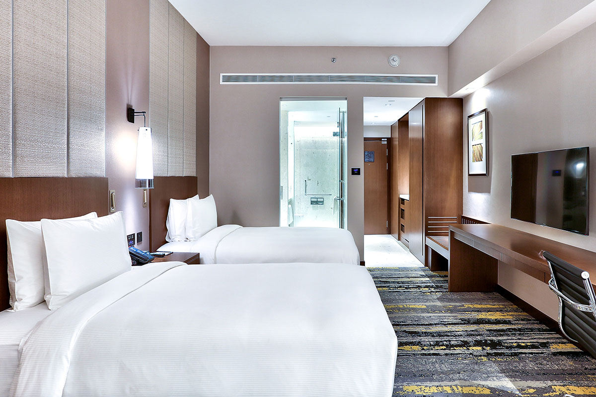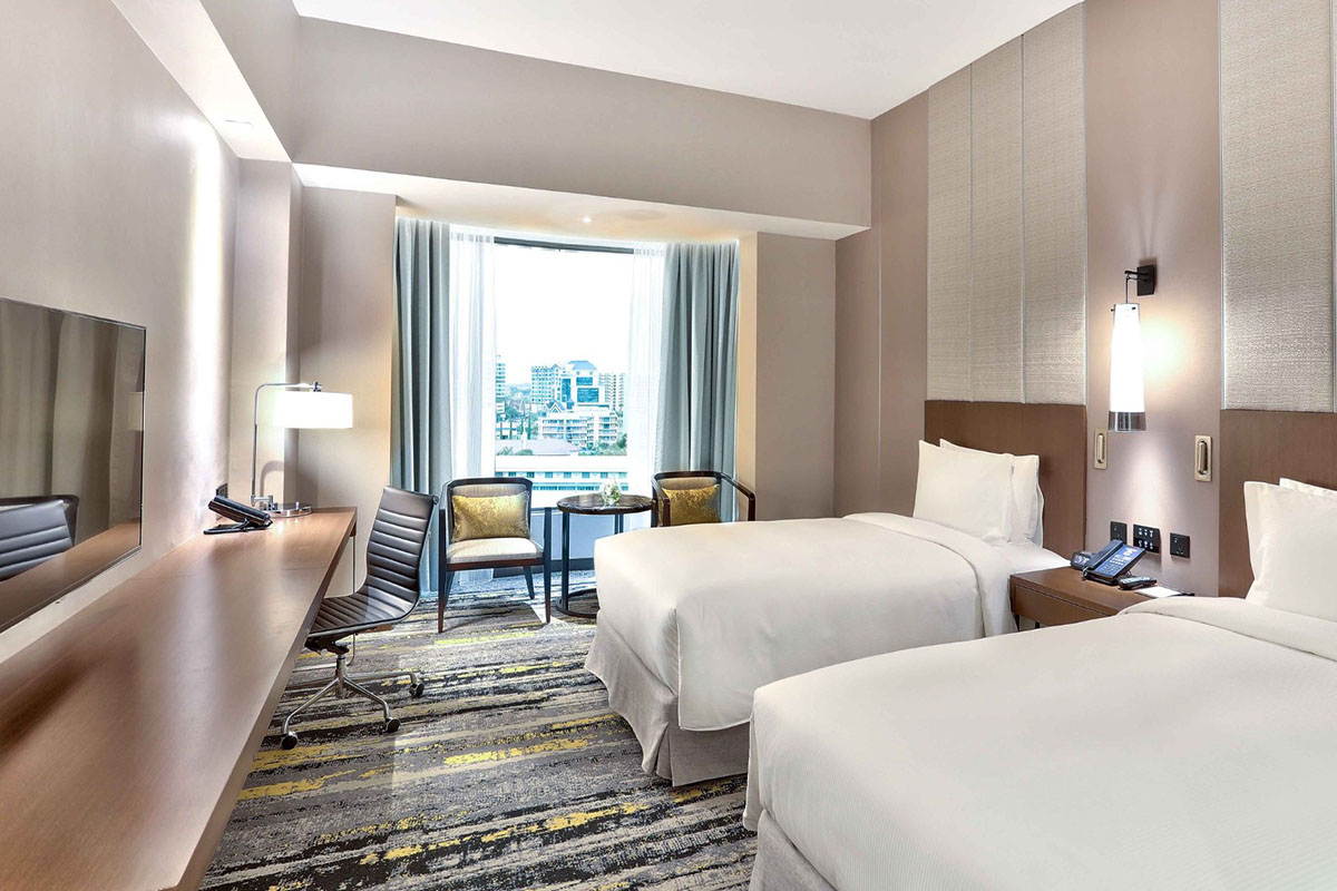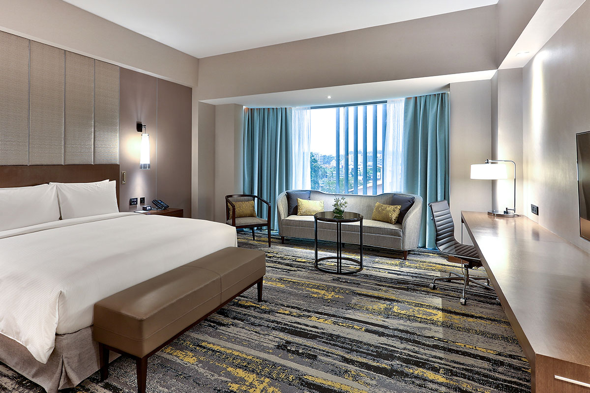 Executive and Suite room guests receive access to Executive Lounge for continental breakfast and refreshments throughout the day. Facilities at the hotel include a grand ballroom, swanky meeting rooms of various sieze, contemporary restaurants, a rooftop pool, fitness center and disabled-friendly features.