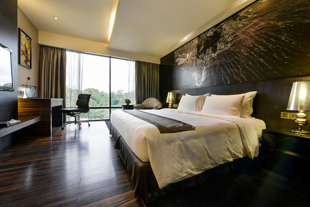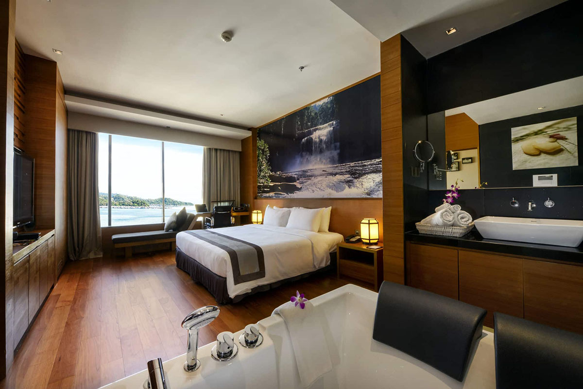 Guests enjoy modern amenities such as satellite television with HDMI connection, attached bathrooms with rain shower, yukata robes and complimentary wifi Internet access, while the hotel has restaurants, a gym, outdoor pool on the 6th floor and spa. Also nearby is the bus terminal for trips to Menumbok to reach Labuan by car ferry.