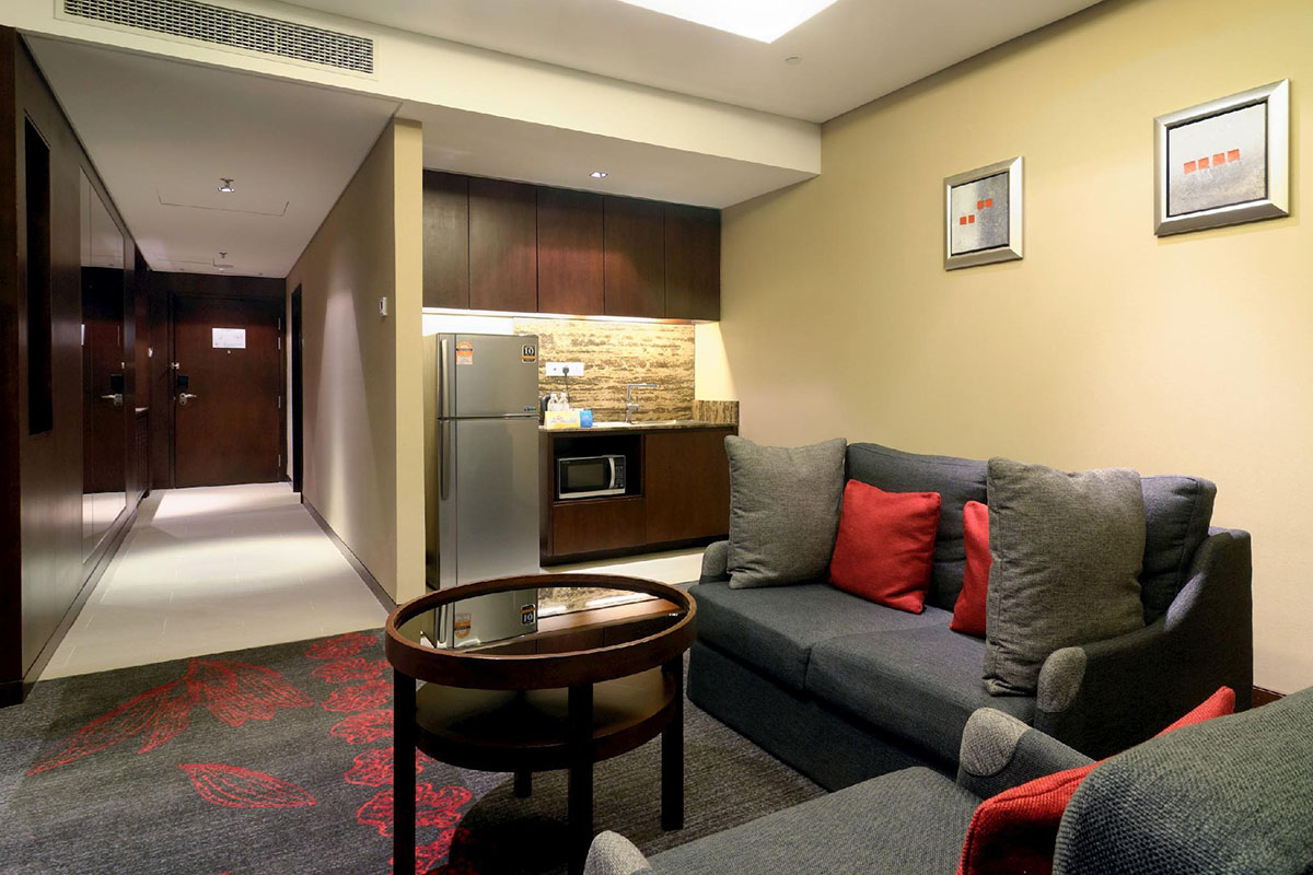 Its strategic location ensures easy access on foot to the Filipino Market and ferry terminal to visit Tunku Abdul Rahman Marine Park, while being connected to numerous shops, restaurants, and services in the shopping complex next door. Also located fairly nearby are Gaya Street and Signal Hill.