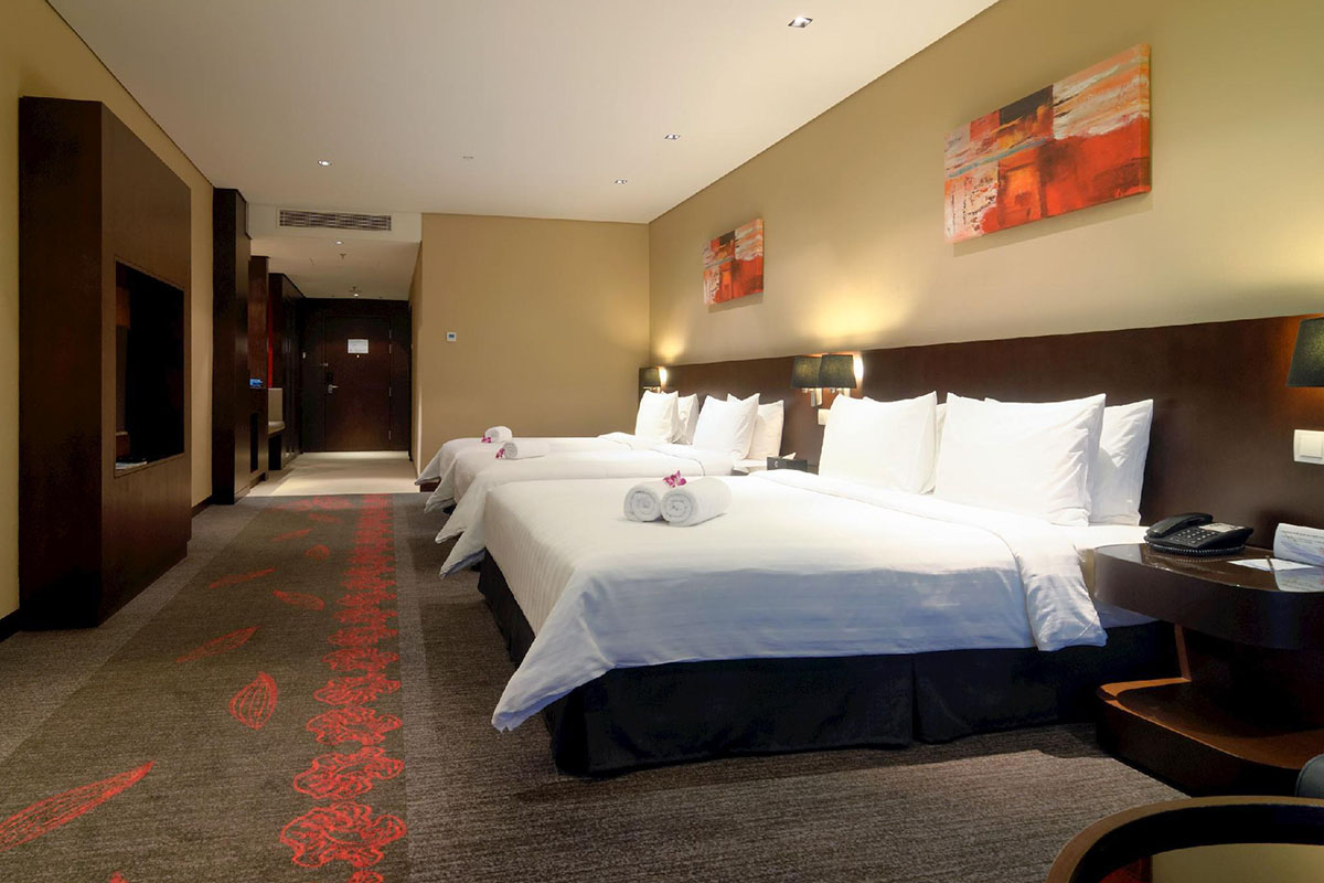 Hotel Grandis is a business hotel that adjoins Suria Sabah Shopping Mall in KK City Center, situated right between the Waterfront and Jesselton Point. Overlooking the sea, the hotel provides boutique family and executive accommodation in chic rooms equipped with air-conditioning, attached bathrooms with hot water, LED television sets with satellite channels, day bed with ottoman andfree Wifi.