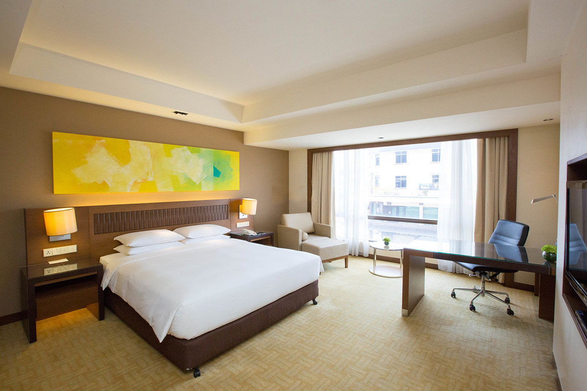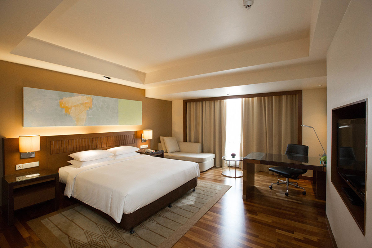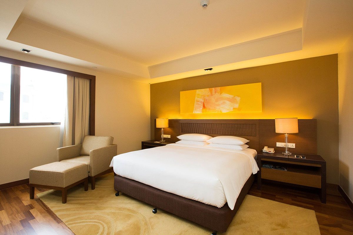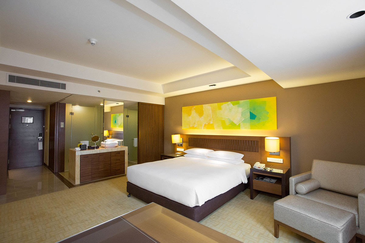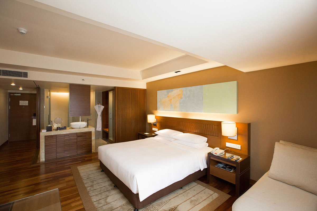 Hyatt Regency Kinabalu is a luxury hotel overlooking the Waterfront in the heart of KK City Center, with easy access on foot to Filipino Market and Gaya Street. Overlooking the city and sea, the hotel provides plush family and executive accommodation in boutique rooms equipped with air-conditioning, attached bathrooms with bathtub, satellite television with DVD player and complimentary wifi Internet access.