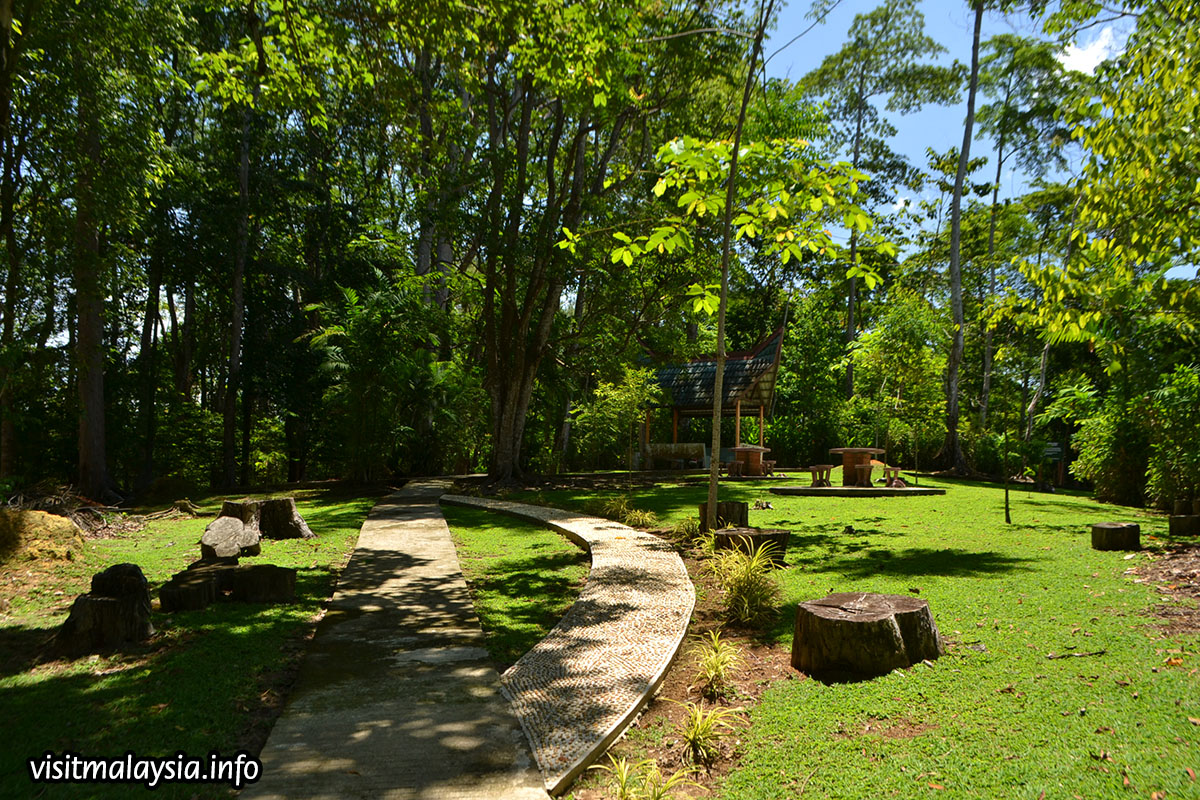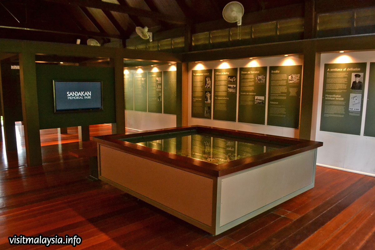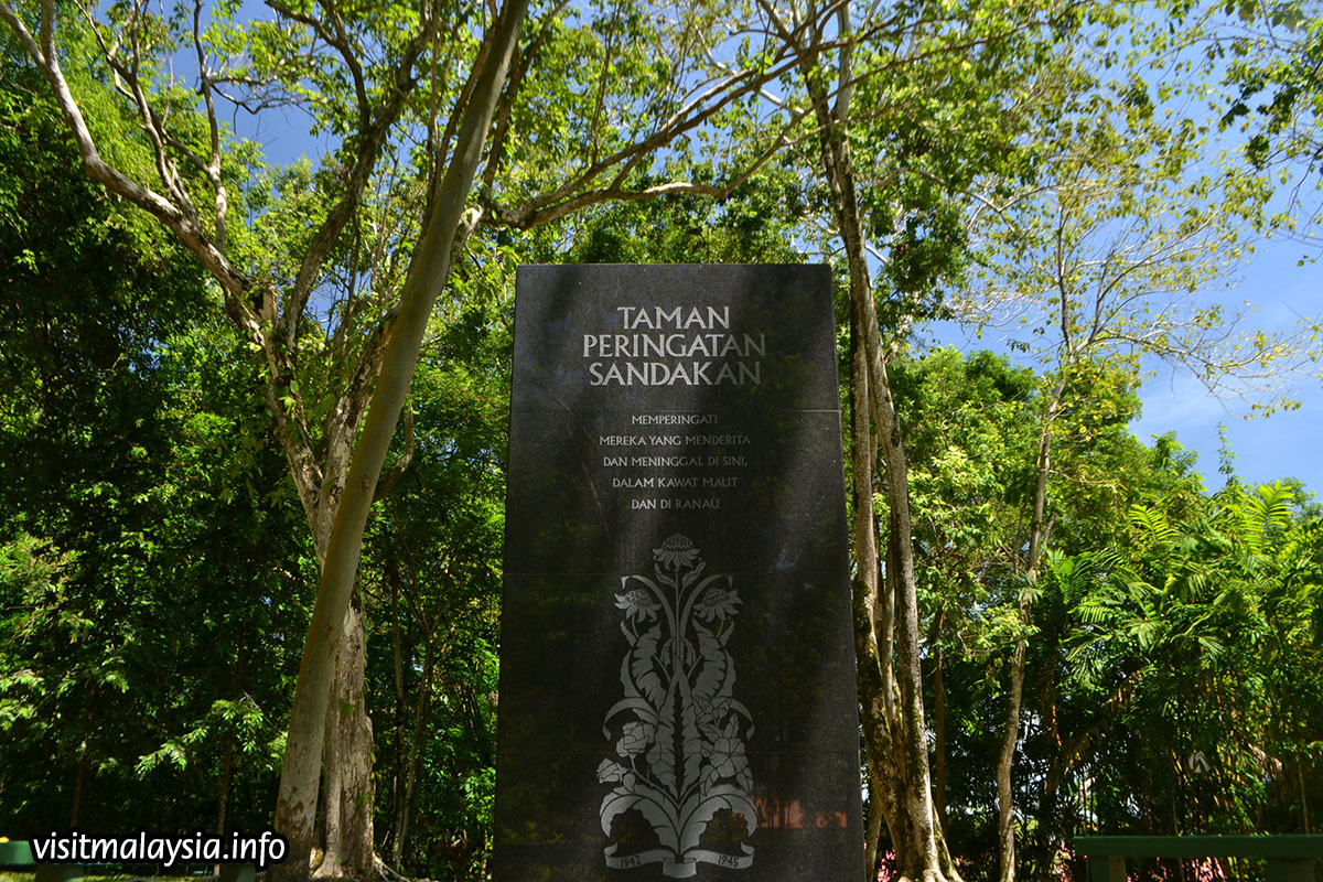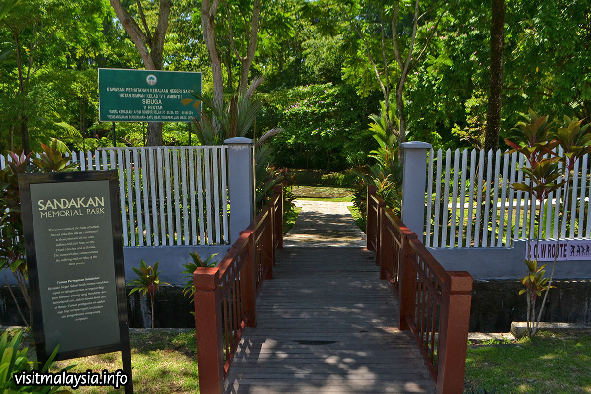 Sandakan Memorial Park is a memorial ground dedicated to natives and prisoners of war caught in the Sandakan Death March that happened during the Japanese Occupation in World War II. Located near the airport in Sandakan, the memorial is housed on a landscaped garden and divided into six stations, each exhibiting part of the former prisoner camp. A commemorative pavilion in the park houses a gallery that provides information on the Sandakan Death March along with a stone obelisk pays tribute to all those that died.
