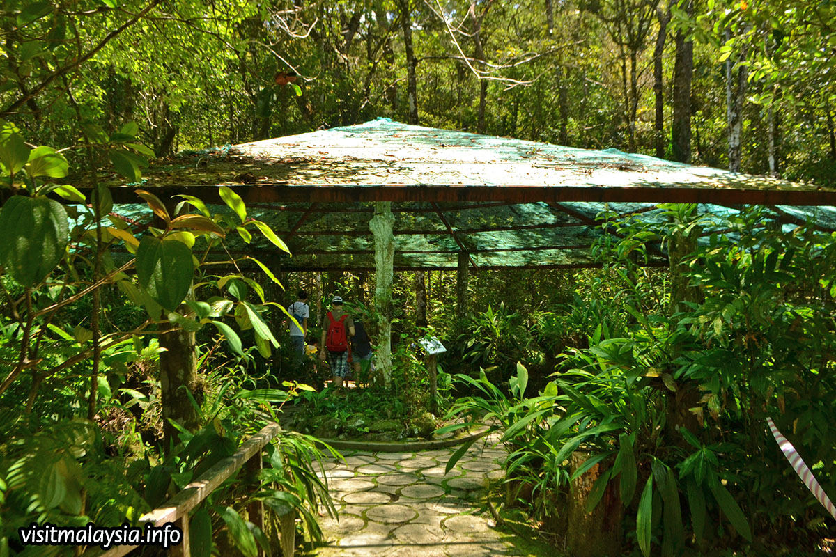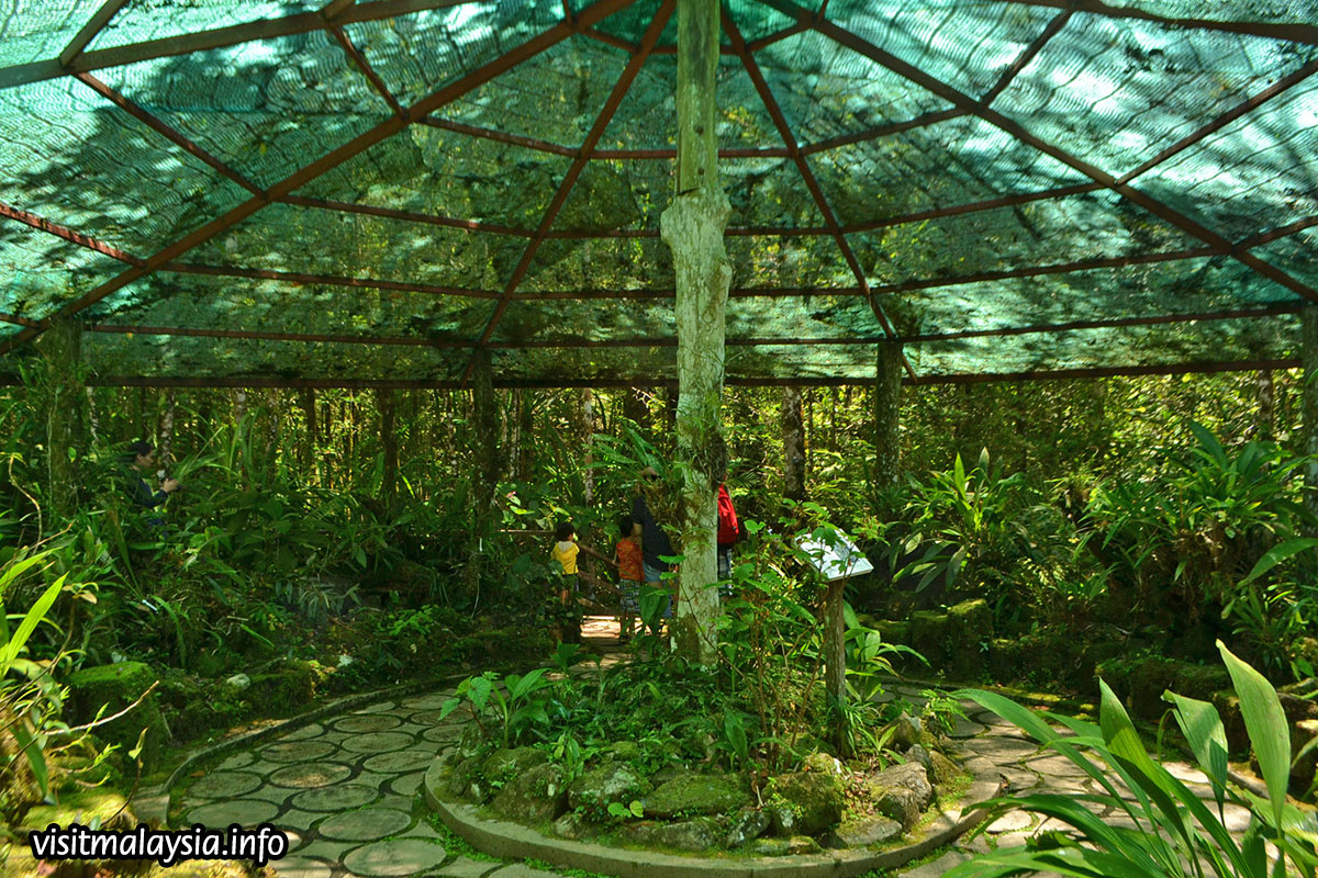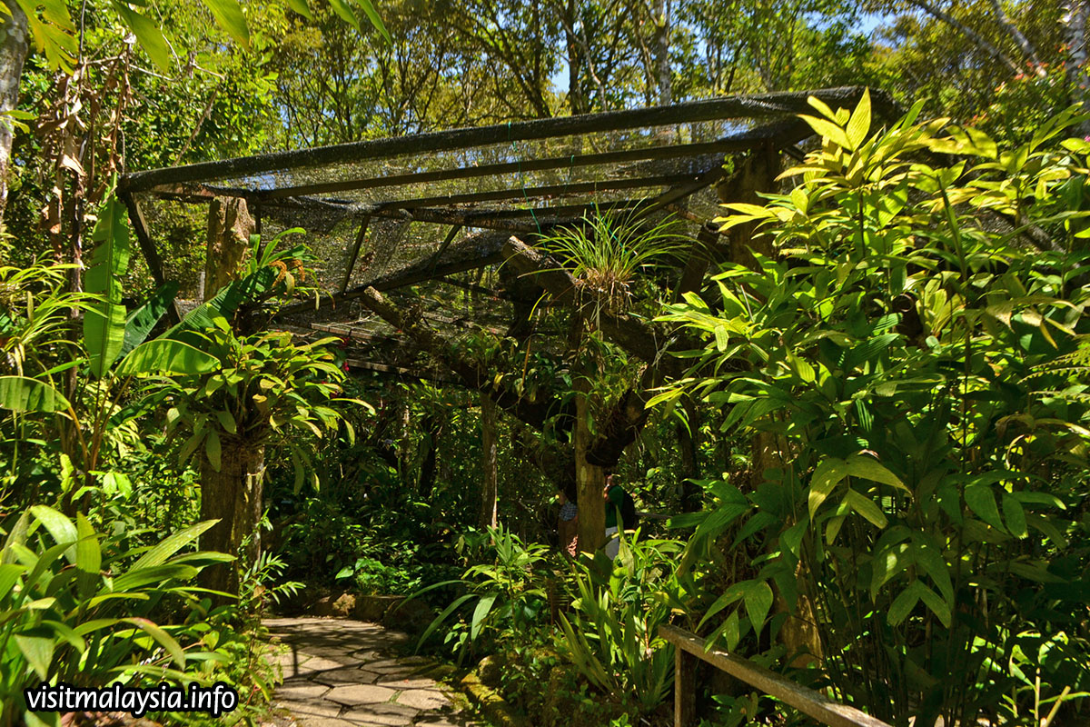 Botanical Garden in a tourist attraction at Kinabalu Park, housing a collection of local flora that includes pitcher plants, orchids, ferns and lianas in a densely landscaped garden that intermingles with the surrounding montane rainforest. For a small ticket fee, visitors can explore the garden without limit, taking time to gaze at the occasional pretty colours and strange leafy formations.