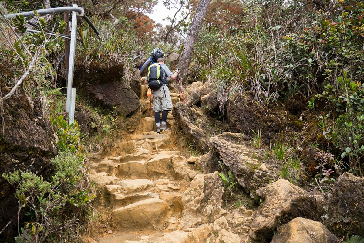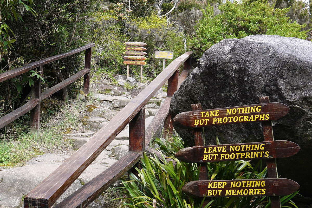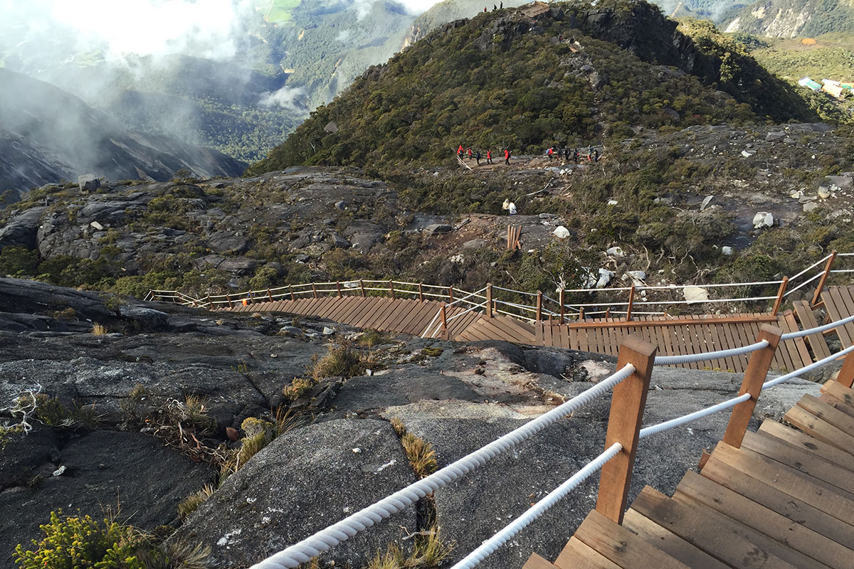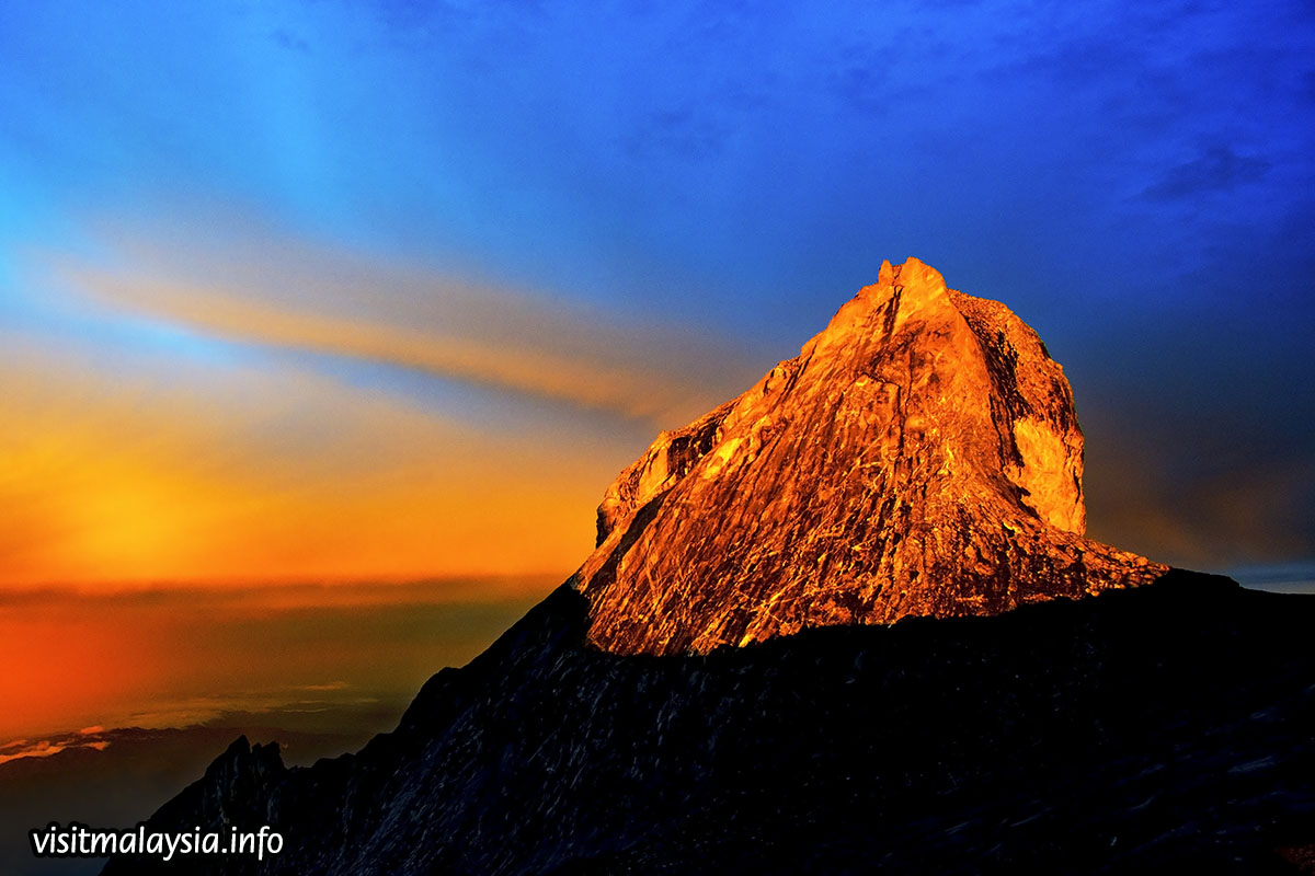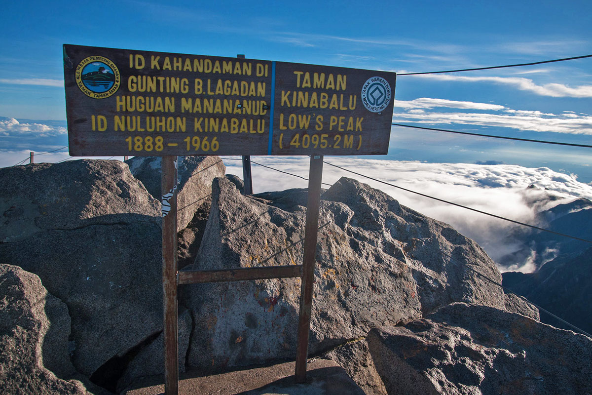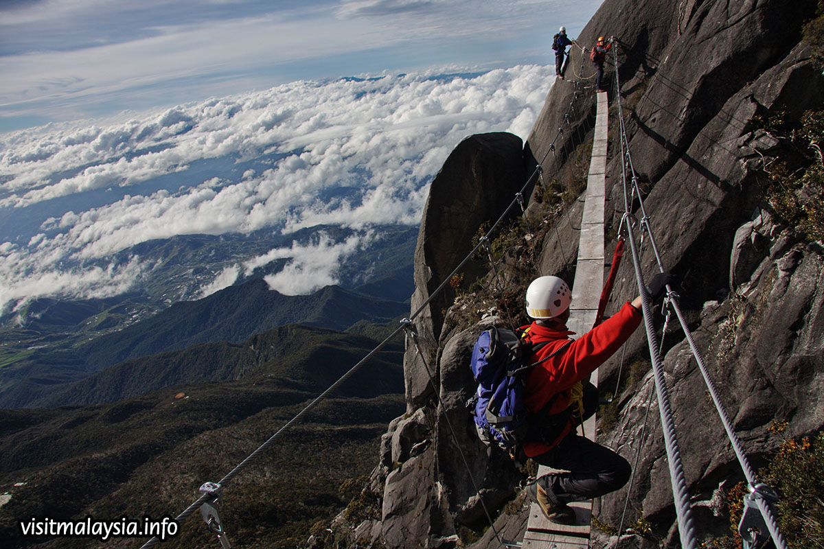 Gunung Kinabalu is ascended by two primary tourist routes; Timpohon Gate in Kinabalu Park or Mesilau (now closed till further notice). A climbing package usually involves an overnight stay at Laban Rata but a day permit can be obtained at the park headquarters; this is an early morning climb dependant on weather, with a cut-off before 12-1pm to reach Low's Peak (approx 4,100 meters high).