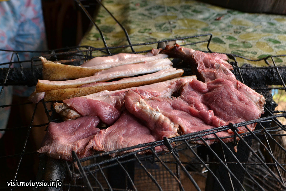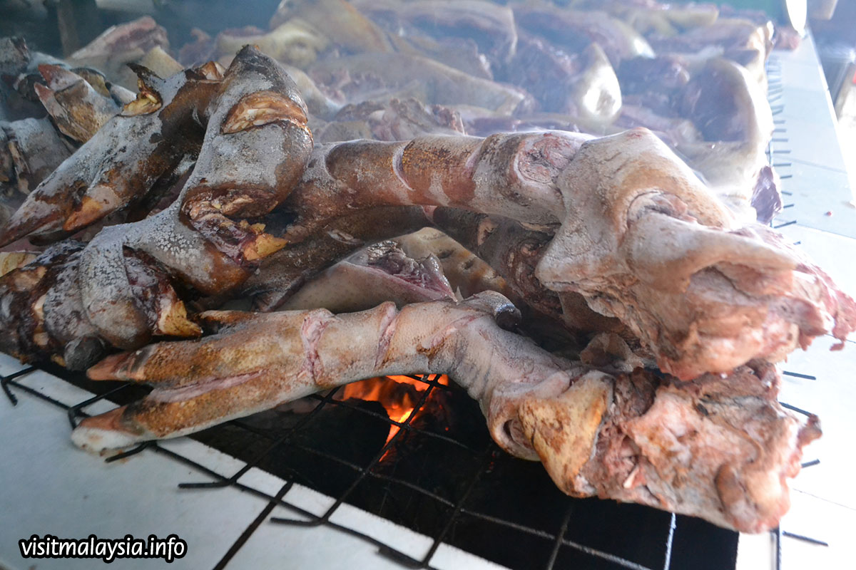 Sinalau Bakas is one of Sabah's most popular native dishes, an iconic food of Kadazandusun people, the largest ethnic group in North Borneo. 'Sinalau' which means 'Smoked' and 'Bakas' which means 'wild boar' is sold mostly from roadside stalls and 'Tamu' markets in west coast and interior districts such as Kota Belud, Ranau, Tambunan, Keningau and Telupid.