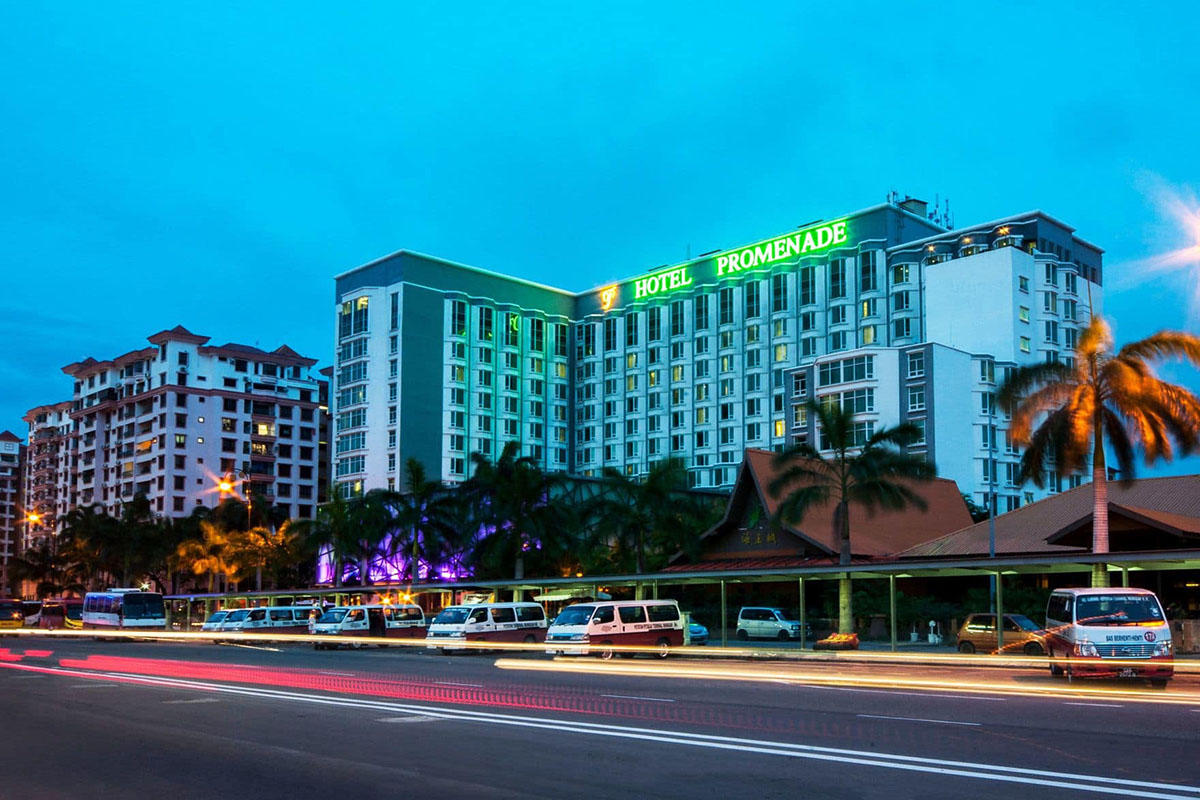 Promenade Hotel is a family hotel that overlooks Anjung Senja towards the south of KK City Center, with quick access on foot to Waterfront and Filipino Market. The hotel provides contemporay accommodation in modern rooms equipped with air-conditioning, attached bathrooms with hot water shower/bathtub, satellite television, complimentary wifi Internet access and views of the sea or city.