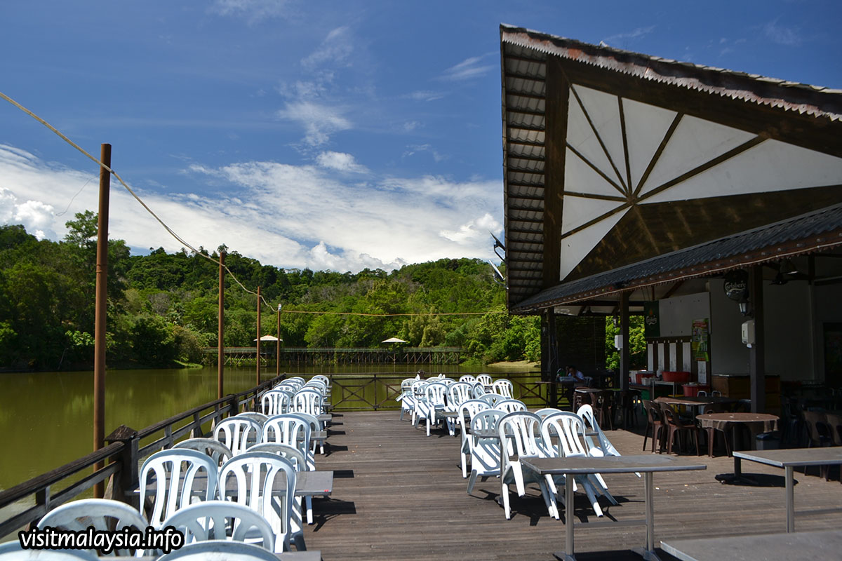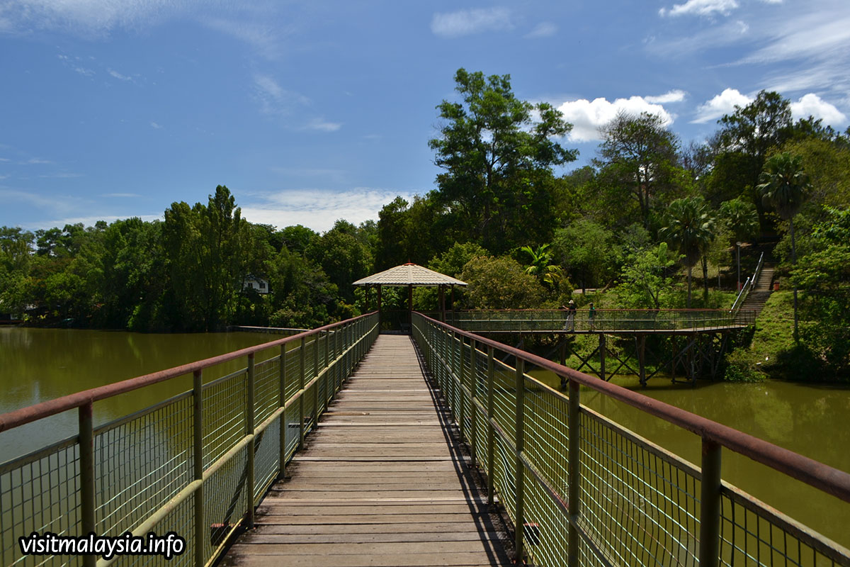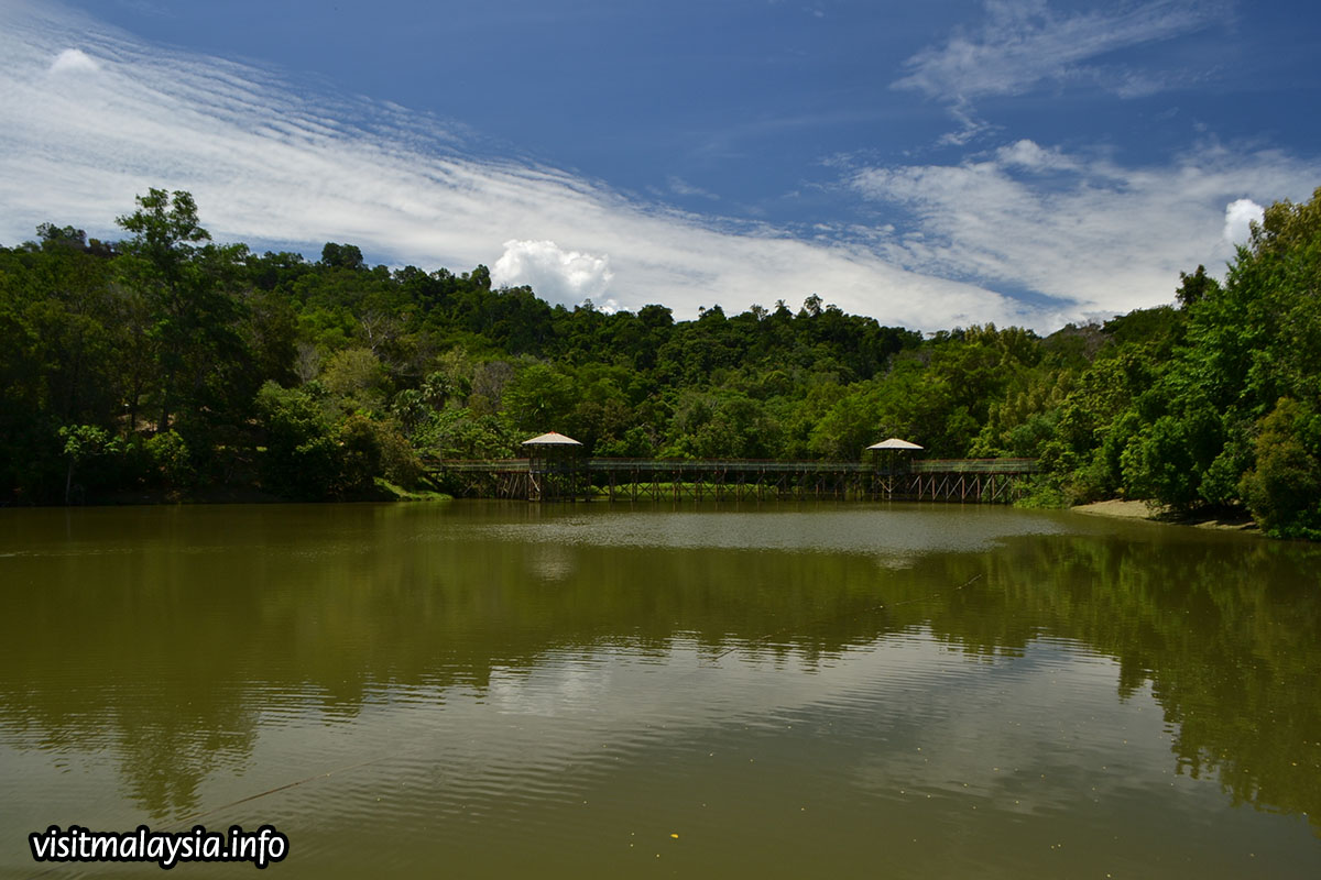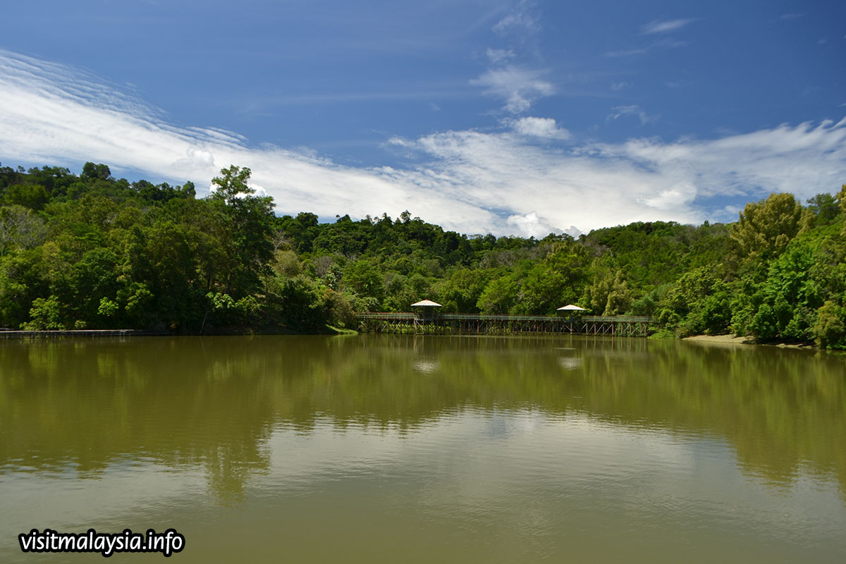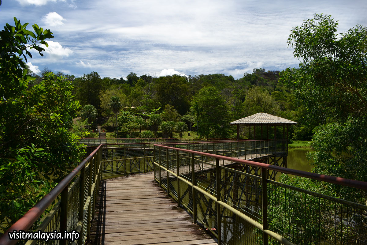 Situated on the park is a picturesque lake that hosts several floating restaurants including Kampung Nelayan, a seafood joint with daily cultural performance catering for tourist groups. In the background, a hilly ridge draped by secondary forest provides a secondary jogging track, leading up to its 140 meter high summit that overlooks the west coast and KK City.
